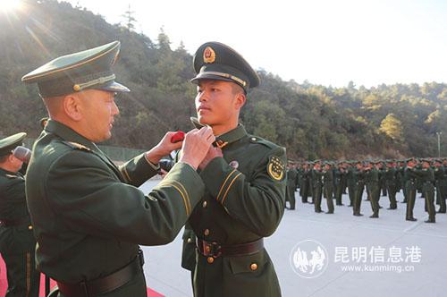 6686体育讯 记者丛林 通讯员叶熙 12月4日,武警昆明支队隆重举行2018年度新兵授衔暨宣誓仪式,数百名新兵被光荣授予武警列兵警衔。授衔后,新战友在鲜红肩章的映衬下,高举右拳,进行了庄严宣誓,抒发了永远做党和人民忠诚卫士的豪迈决心。