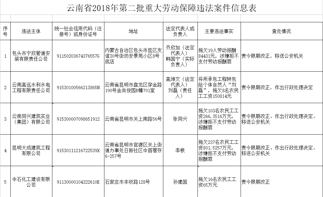 6686体育讯 记者江枫 11月30日,云南省人力资源社会保障厅发布公告,公布了2018年第二批重大劳动保障违法案件,共10件。