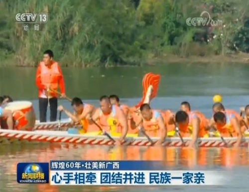 这是不久前广西第十四届少数民族运动会龙舟赛的现场,河池市代表队团结一心,最终摘得多块金牌。有意思的是,赛场上,他们是一条船上的好队友,而生活中更是相亲相爱的同村人。