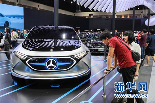 ↑12月4日,观众在泰国曼谷国际汽车博览会上参观奔驰概念车。 新华社 记者张可任/摄