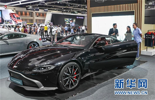 ↑12月4日,观众在泰国曼谷国际汽车博览会上参观阿斯顿·马丁Vantage跑车。 新华社 记者张可任/摄