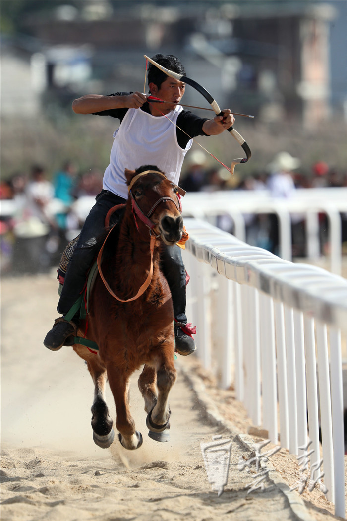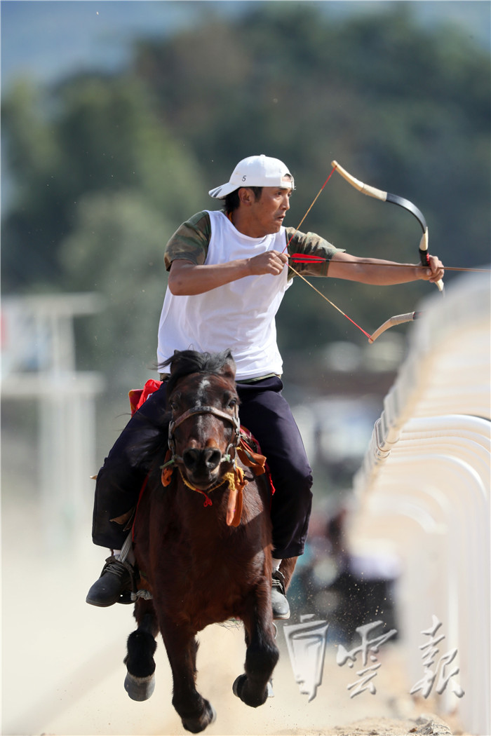 12月6日的比赛,迪庆骑手又拿下了乙组2000米速度赛马的金奖。正当人们猜测迪庆骑手是否有可能包揽当日全部项目金奖时,昆明骑手余学文却在甲组2000米速度赛马中发挥出色,以快6秒多的优势夺得金奖。随后,大理白族自治州代表团的骑手余利刚又在跑马射箭项目中一展绝技,在快速奔跑中连连射中靶纸红心,最后以11分夺取该项金奖。这样,昨日进行的3项比赛,均被3个代表团瓜分。