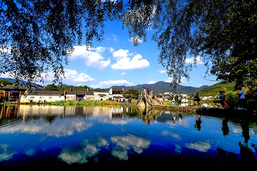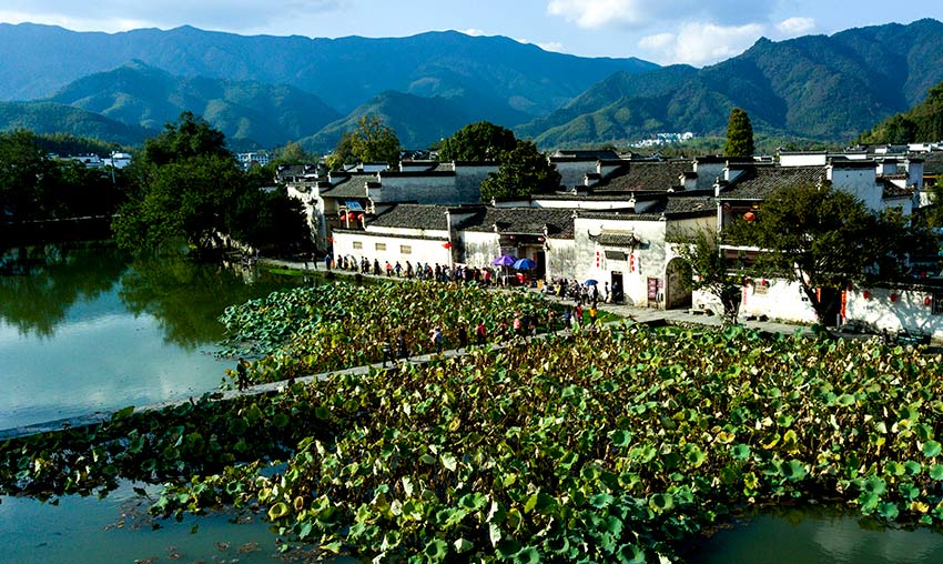 宏村,是古徽州历史遗存的村落,位于黄山西南麓,整个村落占地19.1余公顷,距黟县县城11公里,距黄山风景区35公里,被誉为“中国画里的乡村”。宏村有堪称“中国一绝”的人工水系村落,围绕“牛”形做活了一篇水文章,2000年被列入世界文化遗产名录。走进宏村,穿越历史时空,了解古徽州文化、解密几百年徽商兴盛之路。【“看美丽乡村 庆改革开放”大型主题直播活动·图文产品】