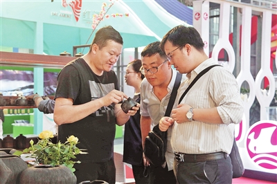 走进建水紫陶展区,现场展示的紫陶制作工艺吸引了中外观展者驻足。“我很喜欢陶制品,对建水紫陶也有一定的了解,但这是第一次看到它的制作流程,很讲究,很难。”今年83岁的陈家宏现定居加拿大,看了紫陶工艺制作流程后陈家宏告诉记者,他对建水紫陶很感兴趣,有机会时要去建水好好学习了解建水紫陶。来自建水的本色陶艺文化发展有限公司也参加了本届“边交会”,据该公司负责人赵云介绍,他们公司的紫陶产品“荷叶壶”和“水缸”卖得最好,仅12月4日、5日两天的时间,这两款产品便已全部售罄。