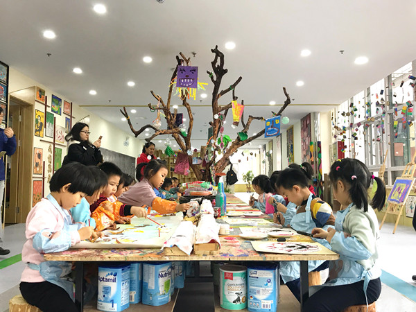 山东省淄博市傅山幼儿园的孩子们正在绘画(高春香/摄)