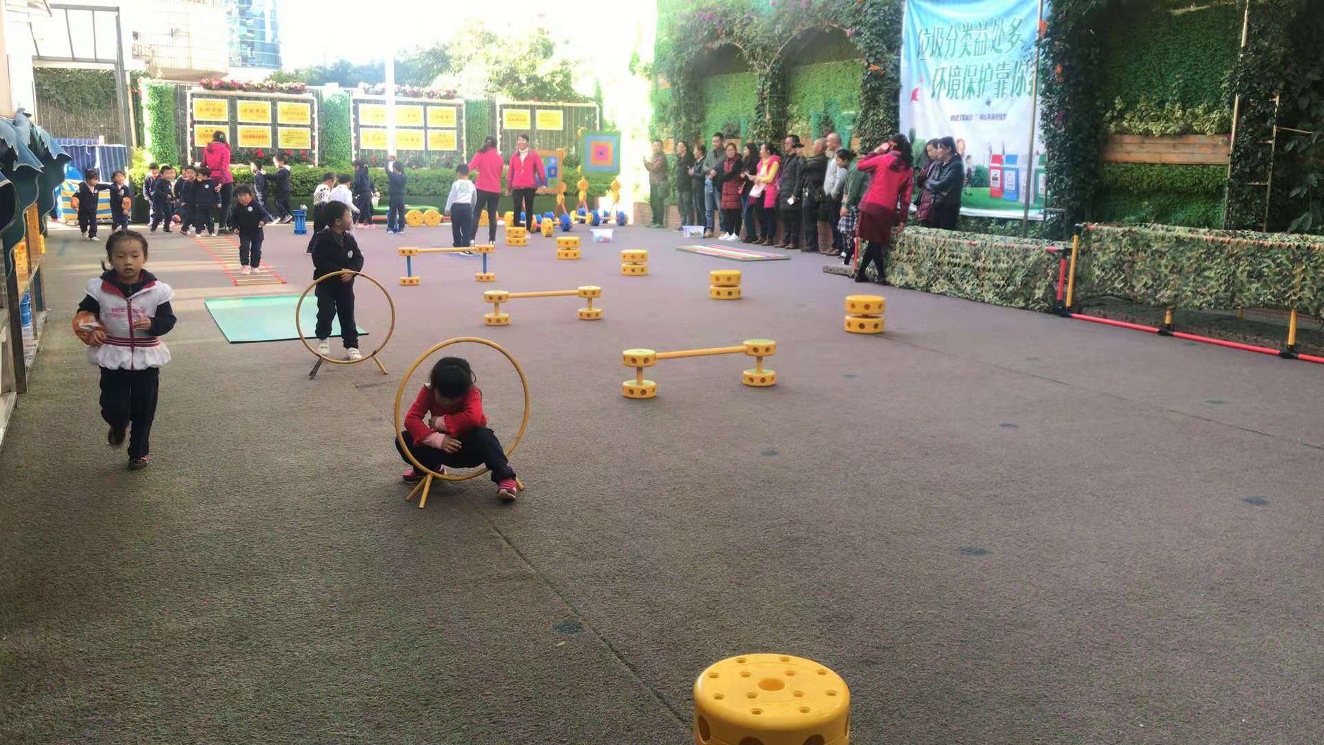 此次开放日不同于往常的是,新迎三幼将户外体能自选区域大循环模式,对家长们进行了全方位的介绍和展示,凭借该模式,新迎三幼在盘龙区户外体育比赛中获得了一等奖。
