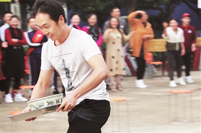 蒙自市过桥米线协会以“崇文、尚德、开放、包容”的蒙自精神为指导,将参赛人员分为崇文、尚德等4个队,共设置走汤接力、拔河、穿针引线、呼啦圈接力等比赛项目。赛场上参赛者你追我赶,相互鼓励协作,各项比赛紧张有序,趣味盎然。