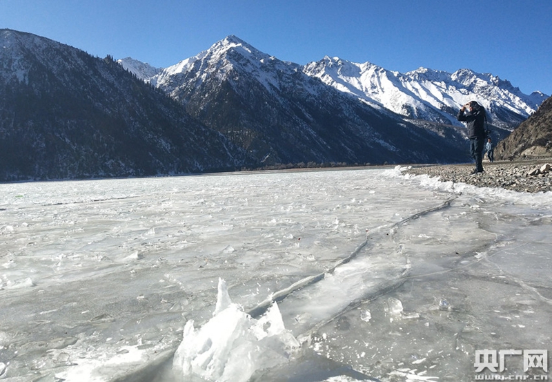 然乌湖一名游客正在拍照(央广网记者 普布次仁/摄)