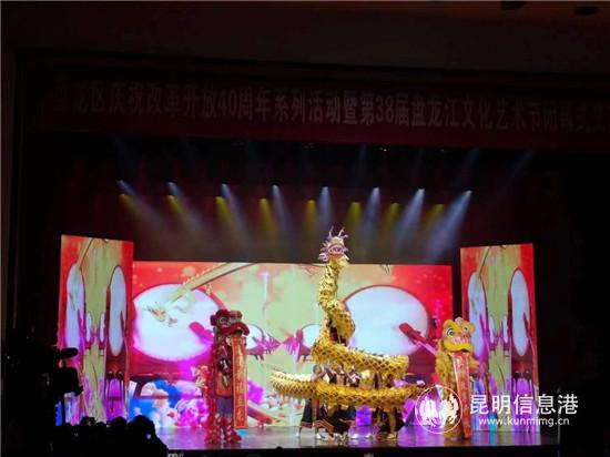 第38届盘龙江文化艺术节以“学习贯彻十九大精神,坚定文化自信建强国”、“喜迎改革开放四十年,共创幸福盘龙新篇章”为主题,以“艺术的盛会,人民的节日”为原则,在为期近一年的艺术节中,号召全区12个街道、103个社区、数十万群众积极参与其中,共同开启新征程、谱写幸福盘龙新篇章。