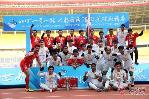 2018“一带一路 七彩云南”国际足球邀请赛于12月16日在昆明拓东体育场圆满落幕。来自泰国的春武里俱乐部队以3:2的比分战胜塞尔维亚贝尔格莱德繁星俱乐部队,赢得了本次比赛的冠军。