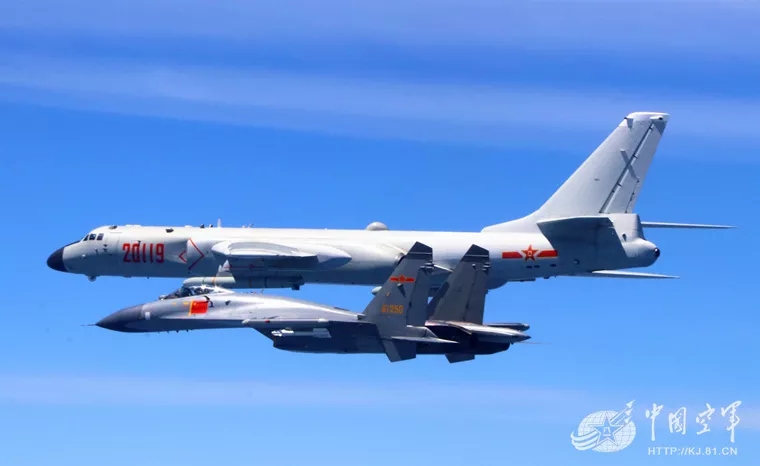 轰-6K等多型多架战机绕飞宝岛台湾