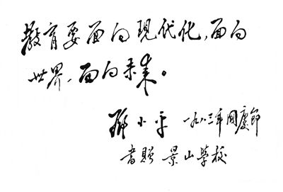 “小平同志给我们题词啦!”“再念一遍!”在这个还没有被确立为教师节的普通的9月10日里,景山学校的教师们经历了毕生难忘的喜悦。