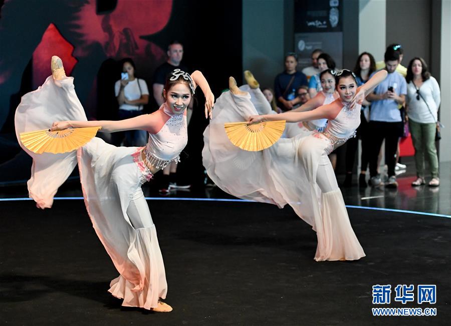 12月15日,在新西兰首都惠灵顿国家博物馆,来自海南舞蹈团的演员参加“秦始皇兵马俑:永恒的守卫”展览首个开放日热场演出。当日,“秦始皇兵马俑:永恒的守卫”展览在新西兰首都惠灵顿国家博物馆正式向公众开放。新华社 记者郭磊/摄