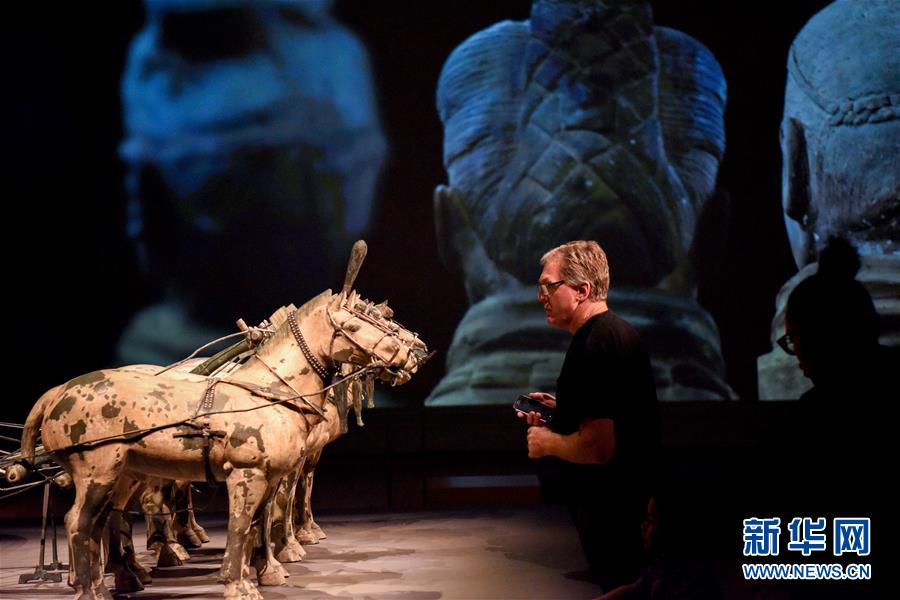 12月15日,在新西兰首都惠灵顿国家博物馆,观众在“秦始皇兵马俑:永恒的守卫”展览上参观。 新华社 记者郭磊/摄