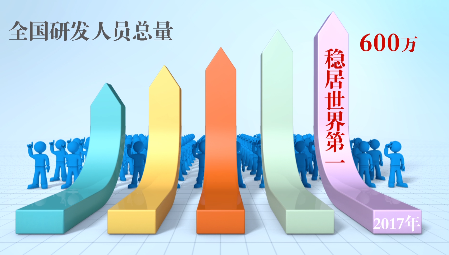 科技创新人才队伍也不断壮大,2017年,全国研发人员总量超过600万,研发人员总量连续5年稳居世界第一,而在1991年的时候还不足百万。