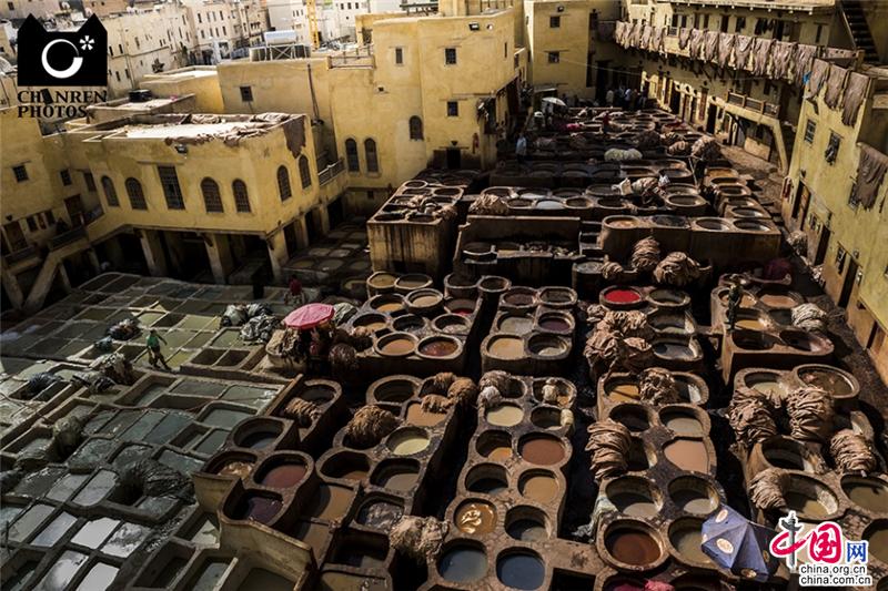 菲斯古城内有趣而痛苦的参观项目,非“百年染坊”莫属,参观这里时,每一个人都会得到一小支薄荷,你可以把它塞在鼻子里,来阻挡染坊发出的令人窒息的恶臭。