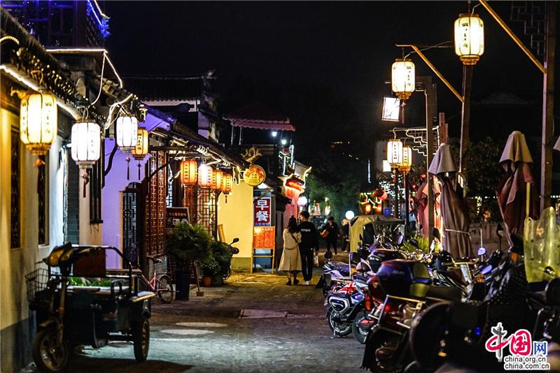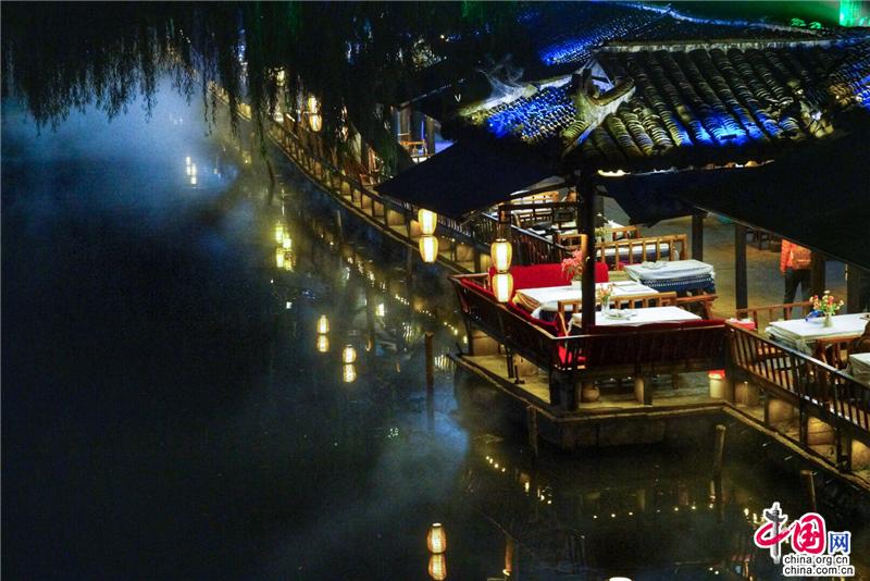 古镇的粉墙黛瓦在五彩的灯光衬托下,不失古典味却又时尚感十足,光影幻化中如梦如幻散发着迷人的魅力。