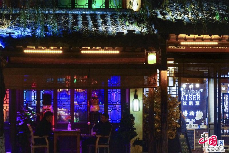 在夜色中,寻着歌声走进桥头一间酒吧,一个人临窗,一壶桂花酿独酌,窗外,周庄夜色在水中荡漾;酒吧内,老板娘和她的朋友在放声高歌,作为古镇的过客,并没有孤独感,却是有一种融入古镇生活的亲切感。
