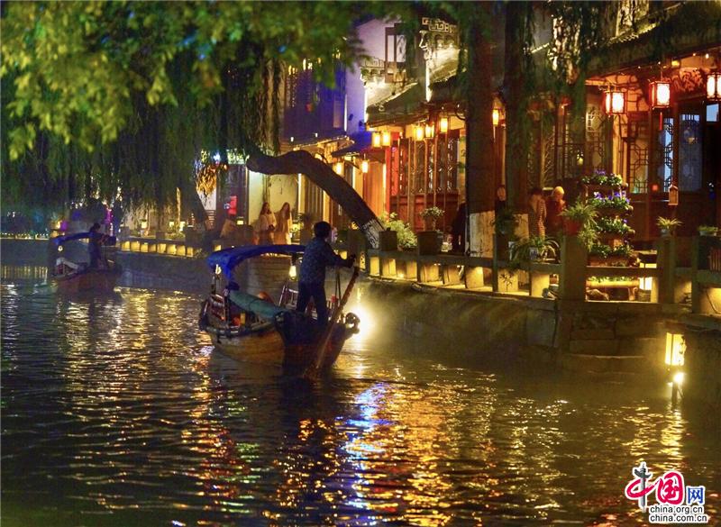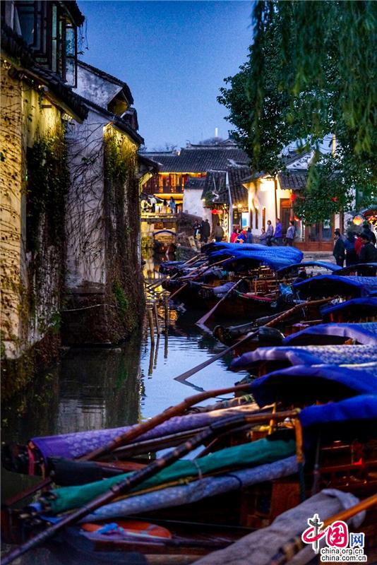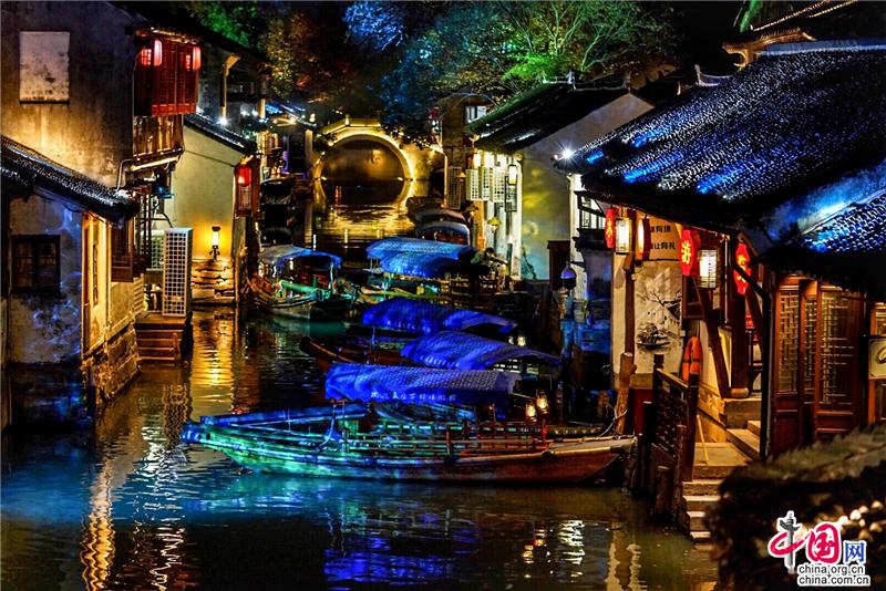 有人说“周庄的夜是一幅无法用色彩描绘出的画作,因为它太宁静又柔和;有人说”周庄的夜是一首无法用文字表述的诗,它的诗意在河水中流淌、在小船的飘荡、在亭台楼阁间满溢,唯有静静的用心感受与体会,古镇那份寂静安宁和人间烟火味。
