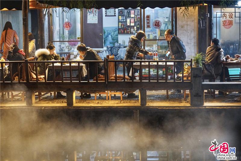 冬日,夜幕降临后的周庄,被灯火点燃,这座白日里热闹的古镇,切换了模式,平静而安详,每一处灯火,都有着一份等待的暖意与温馨,“进来看看啦,有没有喜欢的呢?”“吃过饭没有啦?进来吃饭吧,有地道的土菜!”路过街巷的店铺,老板用方言轻声的招呼。