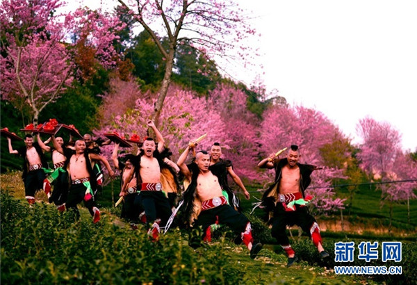 南涧跳菜起舞在樱花谷中。