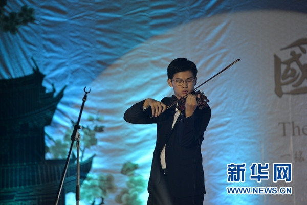 中国留学生表演小提琴。新华网发 王大玮/摄