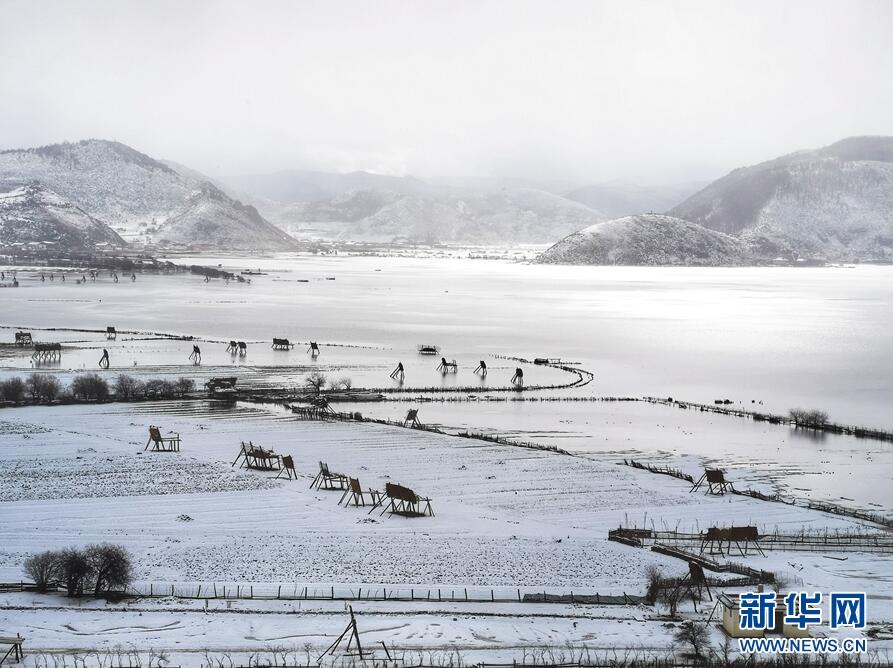 大雪的降临,为纳帕海自然保护区披上了一件白色的“外衣”。(新华网发 崔永江/摄)