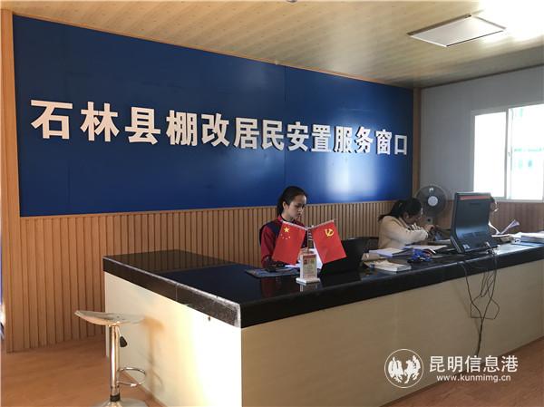 石林县棚改居民安置服务窗口正在为群众办事的工作人员