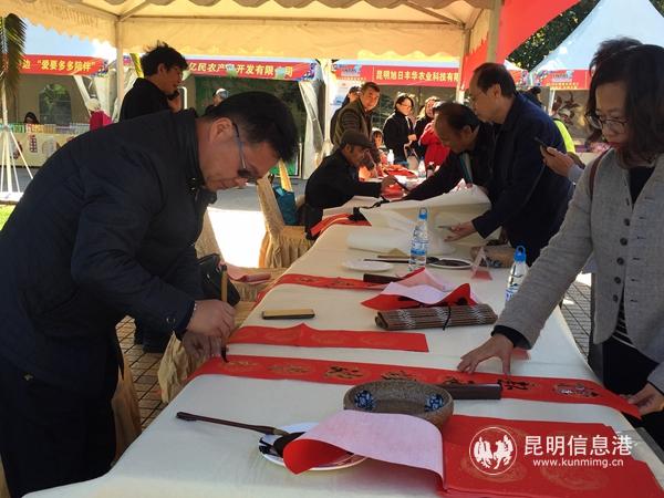 活动当天,由云南省文联和云南世博旅游集团联合主办的“送欢乐下基层喜迎新春 美术书法摄影进企业文化惠民”活动同期举行,现场,包括陈鸿翎、杜建民、张斌、朱从凯等在内的15位全省著名书法家、画家、摄影家组成的“文艺志愿服务小分队”,为游客挥毫泼墨,送上春联、画作及迎新祝福。