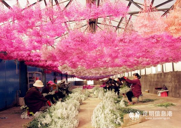 除了鲜切花种苗、鲜切花、盆花等产品外,云南花卉产业还有鲜切花后加工产品,此次入选“10大名花”的云南利鲁环境建设有限责任公司“梦之草”牌保真花(满天星)就属于鲜切花后加工产品。
