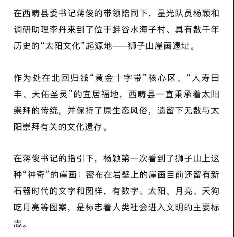 22日,在电影频道的组织带领下,星光队员杨颖(Angelababy)和调研助理李丹来到了西畴县扶贫调研,走访当地特色产业,为保护珍贵岩画、弘扬民族文化贡献力量。