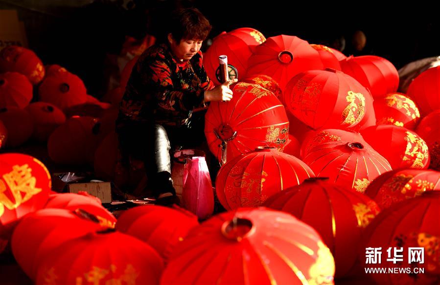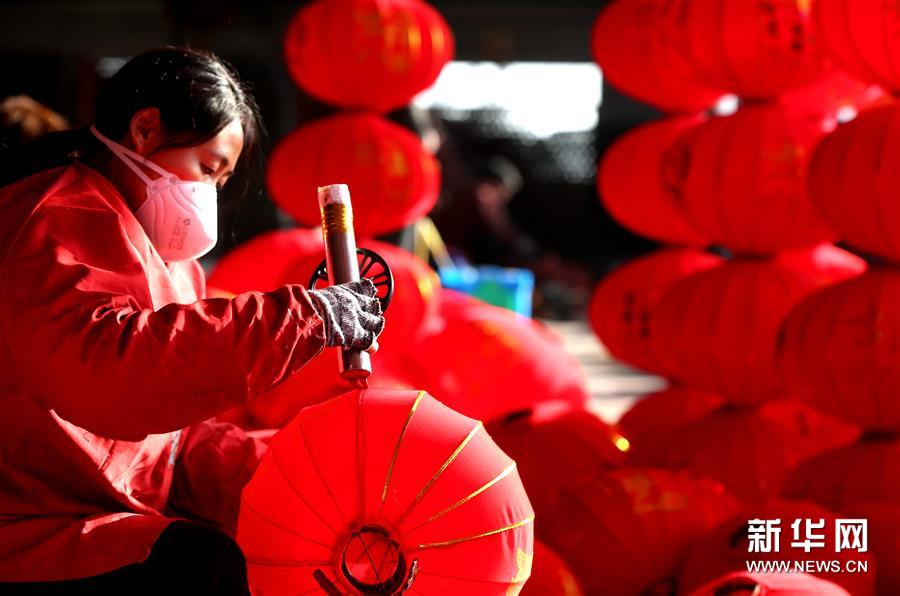 12月23日,在河北省石家庄市藁城区屯头村,一名工人在生产车间制作宫灯。新华社发(陈其保摄)