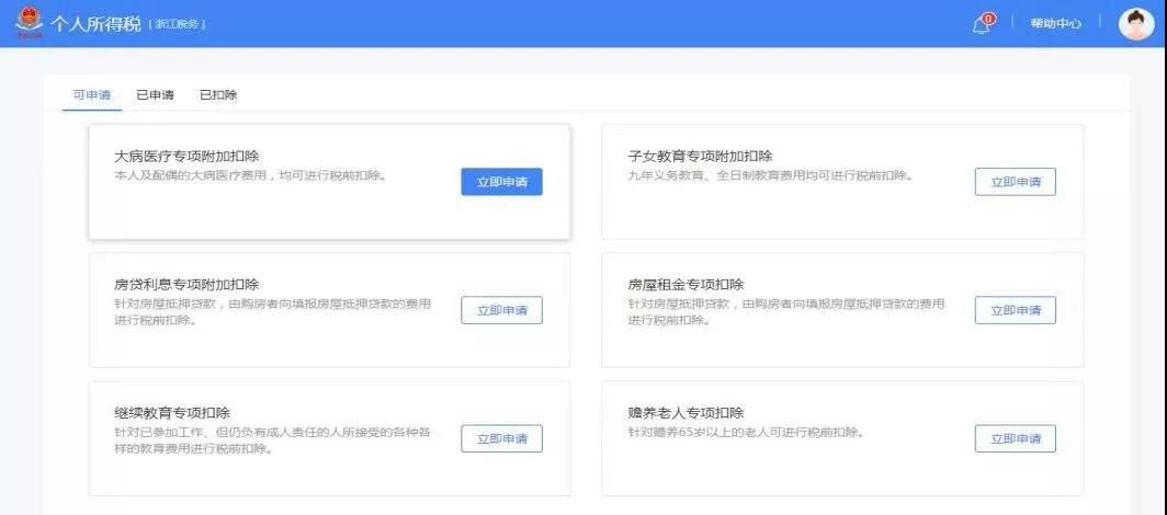 第二步:选择“子女教育专项附加扣除”—立即申请