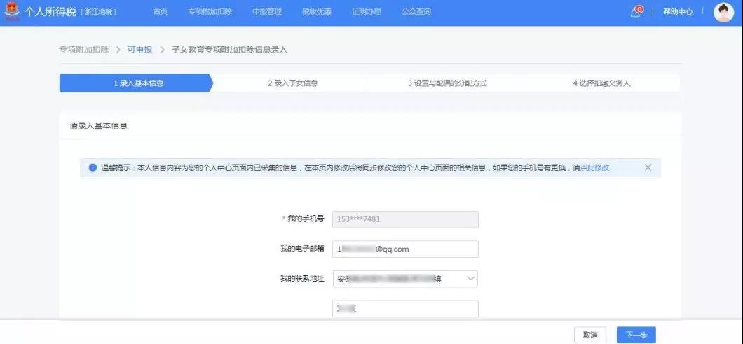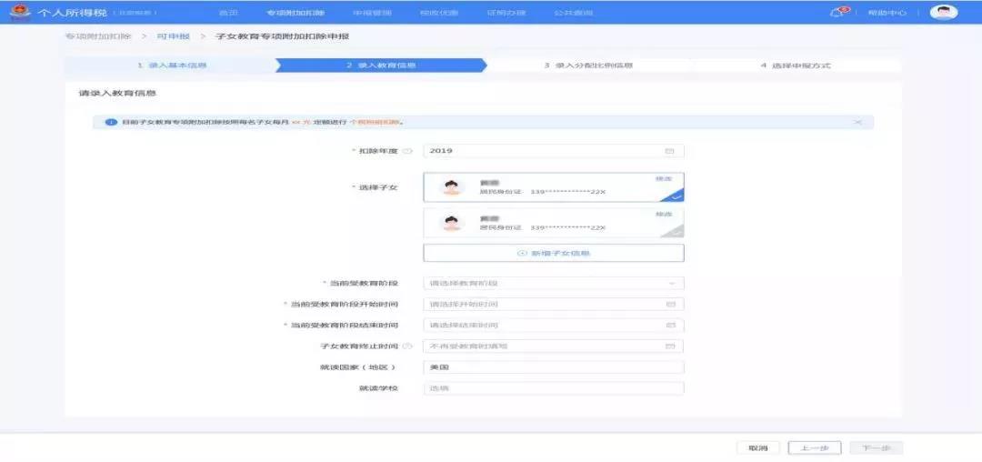 通过对照,如果纳税人有符合申报的专项附加扣除,那么就可以进入填报环节。