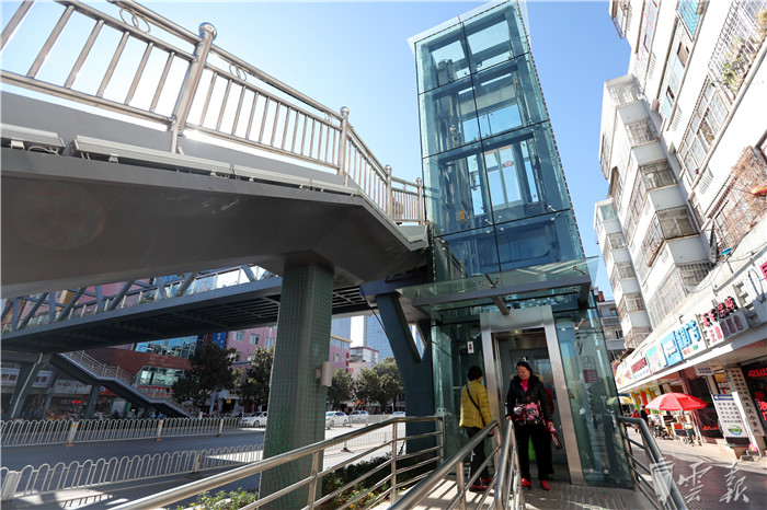 12月25日,昆明市首座安装电梯的人行天桥在环城南路与明通路路口投入运行,其方便快捷的人性化服务,让过天桥的市民赞不绝口。