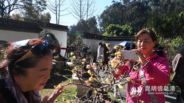 游客被蜡梅的香味吸引。昆明日报记者杨艳辉/摄