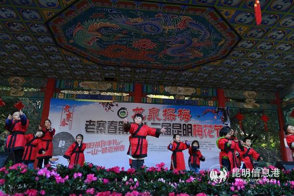 黑龙潭公园副主任安晓西介绍,第二十三届昆明梅花节将持续至明年2月28日。期间将举办一系列精彩纷呈的活动,有2019年1月19日—27日间举办的“龙泉探梅”第四届非物质文化遗产展;2019年2月1日—11日举办的“岁寒三友”第二届精品盆景艺术展,盆景展将携手云南省盆景协会,展示松、竹、梅的雅韵和方寸世界的微妙景观,同时邀请盆景师现场讲解、展示盆景制作技艺;2019年2月5日—7日举办“龙泉探梅”新春龙潭庙会;此外有梅韵元宵京剧表演、古韵坊古风仙侠留影、新春梅花诗词背诵、“龙泉探梅”摄影大赛等。市民在赏梅花之余,还能在梅树下歇歇脚,免费品茗老寨春普洱茶,动手制作干花工艺品,品尝鲜花美食,或者到位于公园办公室楼下的詹记会泽羊肉馆,点上一锅香辣美味的羊汤锅,品尝美味的烤羊肉,度过一个安逸休闲的美丽冬日。