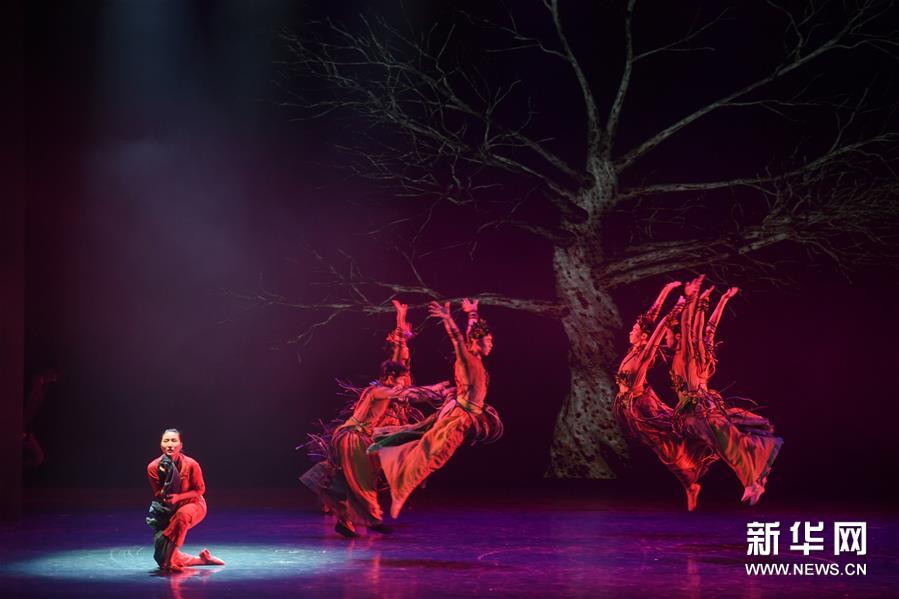 12月25日,在福州大戏院,演员表演群舞《挽·面》。 12月25日晚,福建优秀舞蹈作品展演活动在福州举行,集中展示福建省近年来舞蹈创作的丰硕成果和舞蹈表演水平,来自全省9个单位的13个作品参加展演。新华社记者 宋为伟/摄