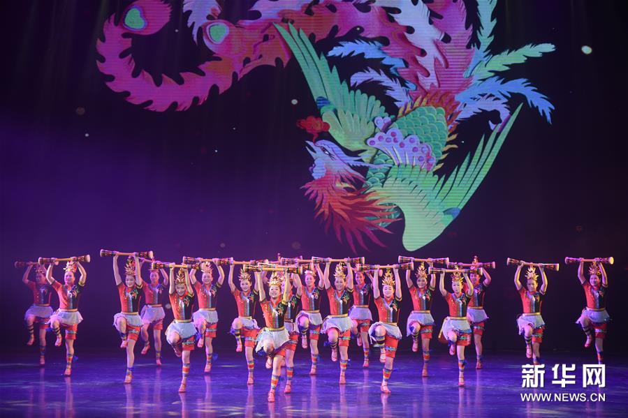 12月25日,在福州大戏院,演员表演畲族广场舞《畲乡渔鼓响四方》。 12月25日晚,福建优秀舞蹈作品展演活动在福州举行,集中展示福建省近年来舞蹈创作的丰硕成果和舞蹈表演水平,来自全省9个单位的13个作品参加展演。新华社记者 宋为伟/摄