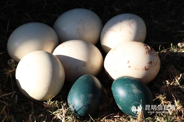 云南野生动物园还准备了珍奇蛋展,诸如鸵鸟蛋、鸸鹋蛋、孔雀蛋等少见的珍稀蛋种,等待游客前去参观。现场,工作人员为大家展示了鸵鸟蛋的蛋壳厚度,两个体重共重120kg的成年人站在蛋体上,而蛋体仍然完好如初。