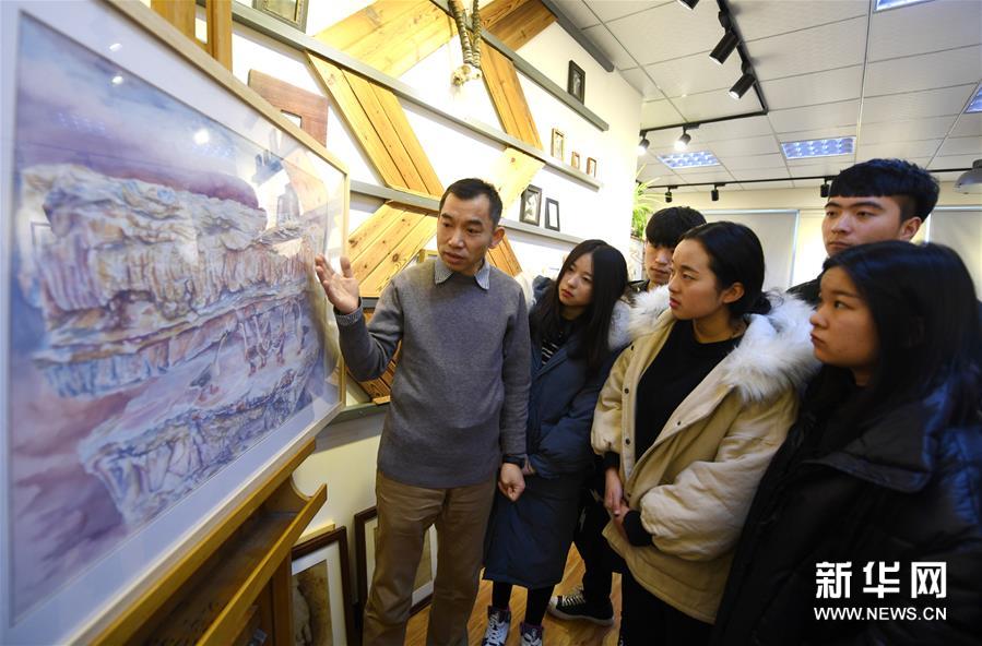 12月28日,河北工业职业技术学院内画老师尹剑情(左二)在为学生讲解内画知识。新华社记者梁子栋/摄