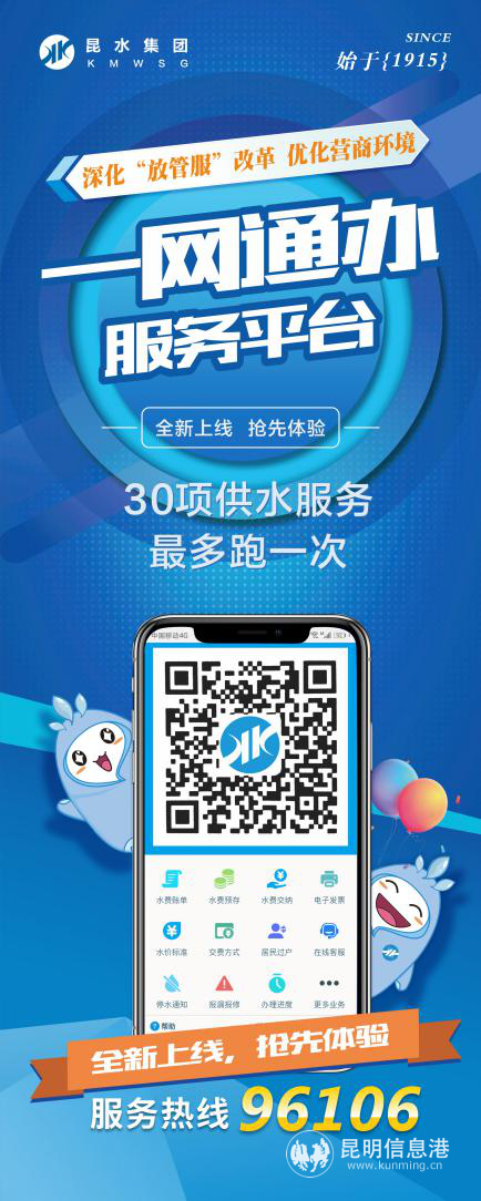 据了解,昆水集团积极贯彻落实省市政府深化“放管服”,优化营商环境工作要求,大力简化供水业务报装流程,到目前为止实现了用户从资料提交到通水办结,所需提交的资料压缩50%以上,办理时限压缩50%以上。在精简办事流程、打造多元化网络服务平台的同时,昆水集团还积极推进对外一站式服务建设,实现供水业务办理即便“最多跑一次”也“只进一扇门”,倾力保障了城市供水的稳定和安全,持续提升供水服务水平。