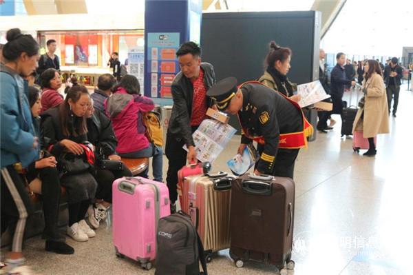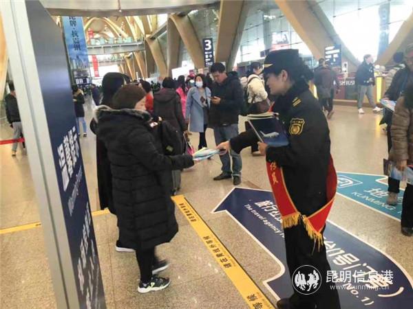6686体育讯 记者上官艳君 12月29日,“文明出行 共创和谐空港”法制宣传及联合执法系列活动在昆明机场航站楼开展,为旅客的顺利出行提供强有力的保障。