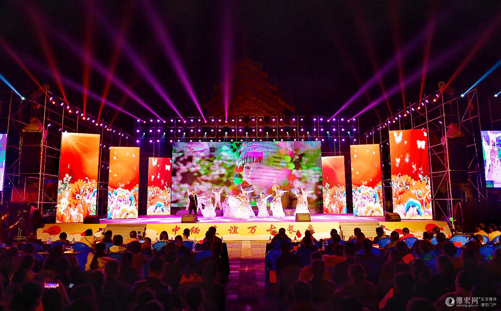 晚会中,缅甸艺术家和德宏优秀的舞蹈演员、歌唱演员们同在一方舞台为相聚在瑞丽的来自全国各地以及缅甸友人们呈现了一台多元、多姿、多彩的表演。傣族舞蹈《有一个美丽的地方》、缅甸歌曲《母亲》、景颇族舞蹈《娋如春山》、缅甸舞蹈《嘎金》、傣族男女对唱《情投意合》、德昂族舞蹈《德昂花》、葫芦丝独奏《花筒裙》等节目的轮番上演获得了台下观众的阵阵掌声。