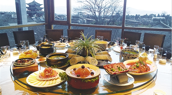 倘若是在顶楼看得见苍山洱海、五华楼、崇圣寺三塔、一塔寺的包间,再来一杯槐米茶,一道道来自十二县市的颜值菜上桌,大理人最深沉的美食记忆,便在老槐树下缓缓书写。