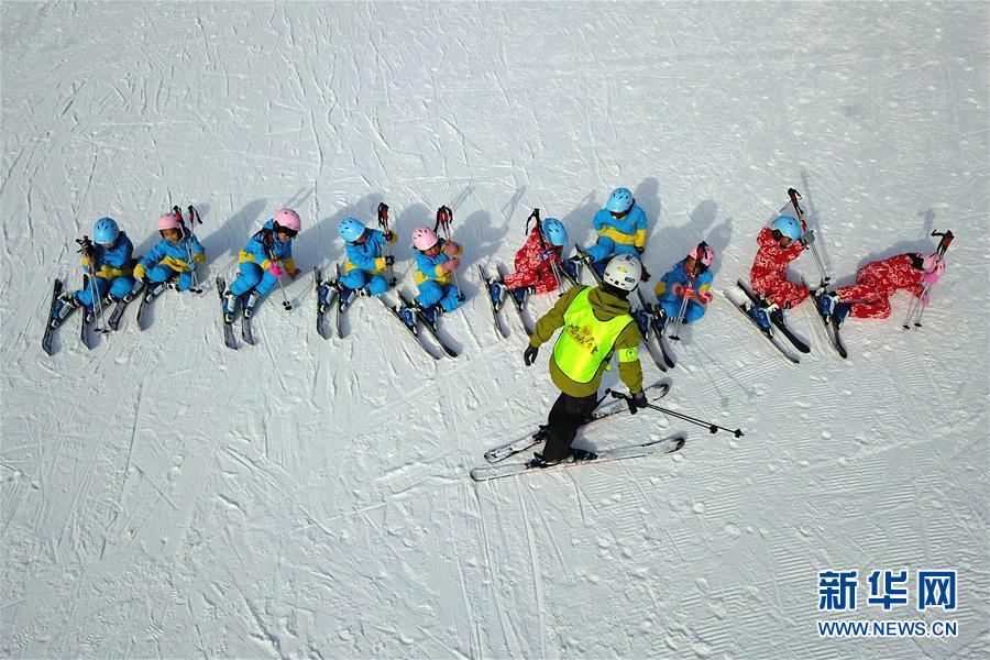 1月3日,教练给小学生们演示滑雪基本动作。新华社记者 范培珅/摄
