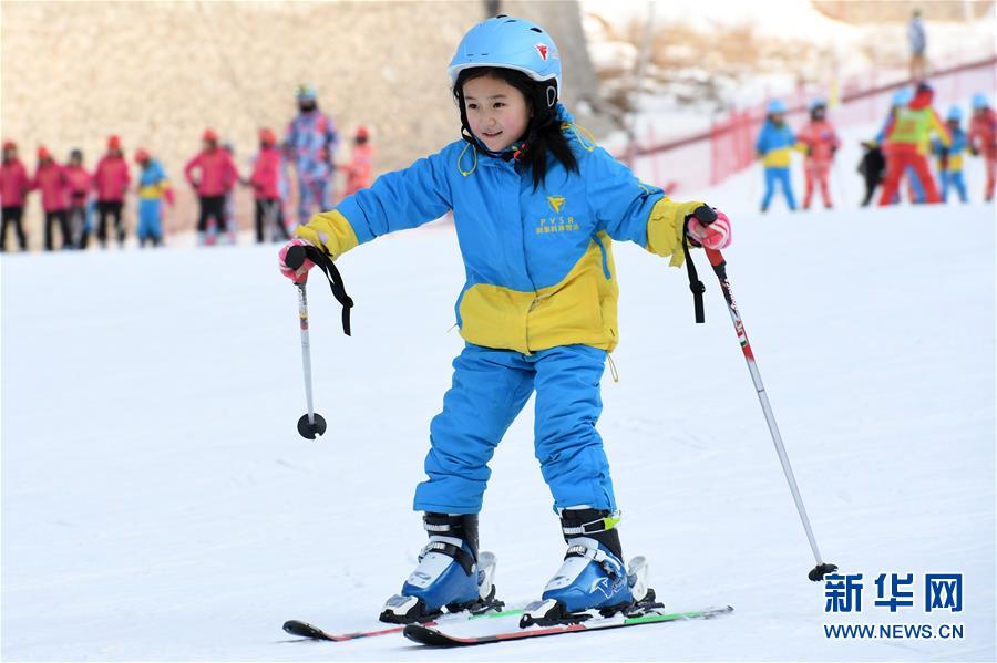 1月3日,一名小学生在体验滑雪中。 新华社记者范培珅/摄