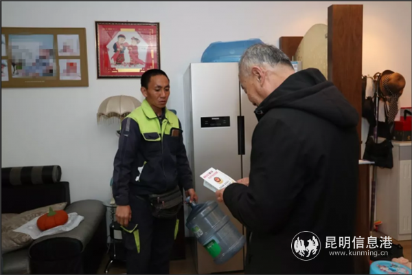 1月3日,昆明珍茗食品有限责任公司水逸康桥水站的送水工人在为棕榈泉花园小区一位用户送水时,将首份昆明市公安机关开展扫黑除恶专项斗争的宣传资料送到市民手里。与此同时,全市珍茗水网点将陆续把首批10万份公安机关扫黑除恶宣传资料送到人民群众的家中。