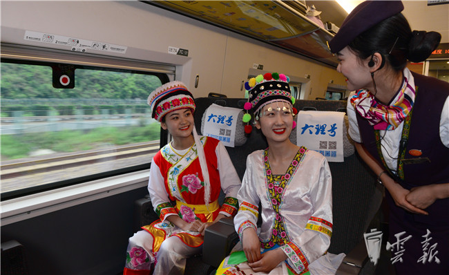 据介绍,中铁昆明局为保障昆明到丽江动车的顺利开通,领导深入一线,做了大量的准备工作。此次和谐号动车造型较为独特,系专门从外地调来,为适应云南高原地形和气候度身打造。动车车厢内也充满了民族特色及元素。同时,还强化了高铁服务员的站姿,礼仪,服务意识等方面培训,多举措做到无缝对接,笑迎四方来客。(云报客户端 记者李洪峰 付世凯)