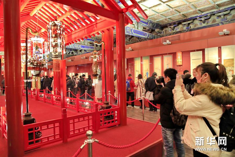 当日,故宫博物院举办的“贺岁迎祥——紫禁城里过大年”展览开展。故宫博物院展出近900件(套)文物,恢复昔日皇宫过年的装饰、活动,为观众呈现一个充满年味的紫禁城。